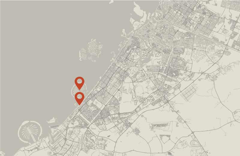 Теңіз жағасындағы Jumeirah Beach Residence және Palm Jumeirah архипелагы